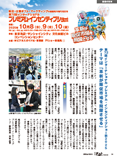 さらに、「第72回プレミアム・インセンティブショー秋2025(PIショー)バイヤーズガイド」として、見どころやイベント紹介、サステナブル・ノベルティ出展社をはじめ注目出展社紹介に加え、全出展社リスト、会場案内図を完全掲載、注目出展社を一挙紹介。